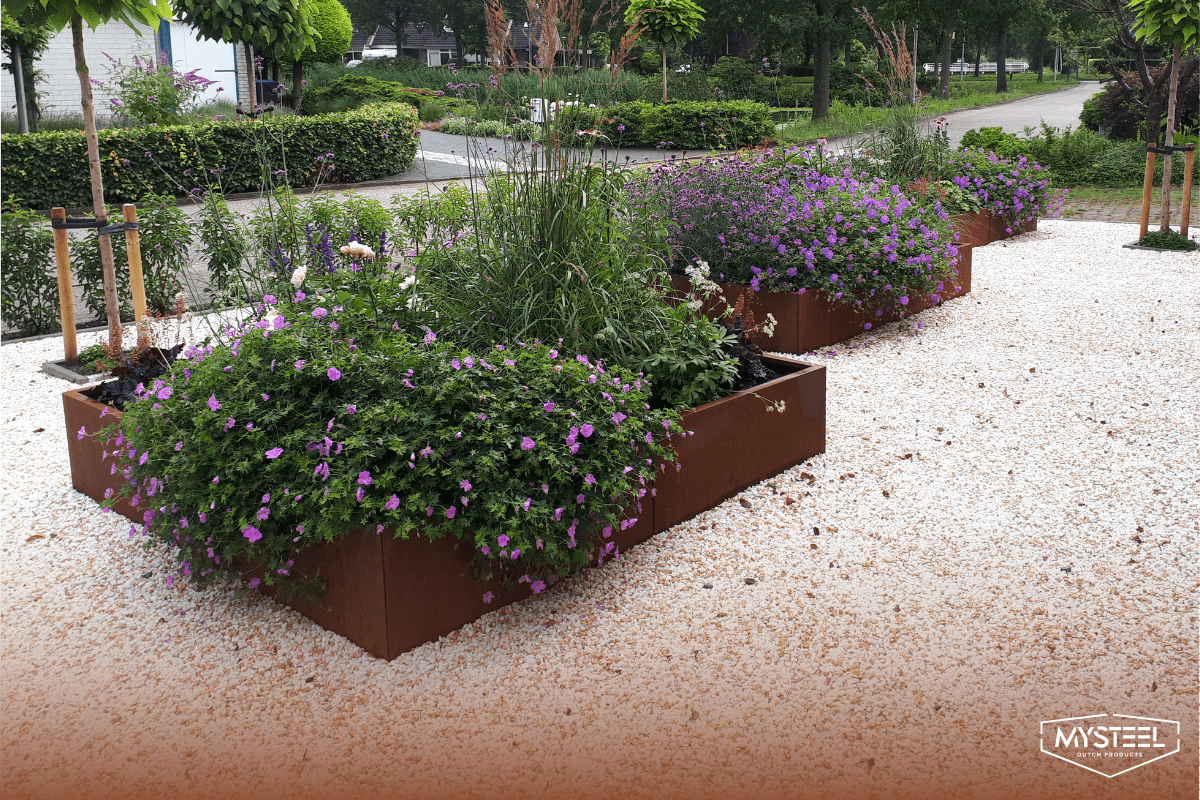 “Älä käytä hydrokorjaimia corten-teräksisessä kasvilaatikossa. Ne pysyvät kosteina, jolloin corten-teräksen ruostumisprosessi ei pysähdy ja voi syntyä hilseilyä.”