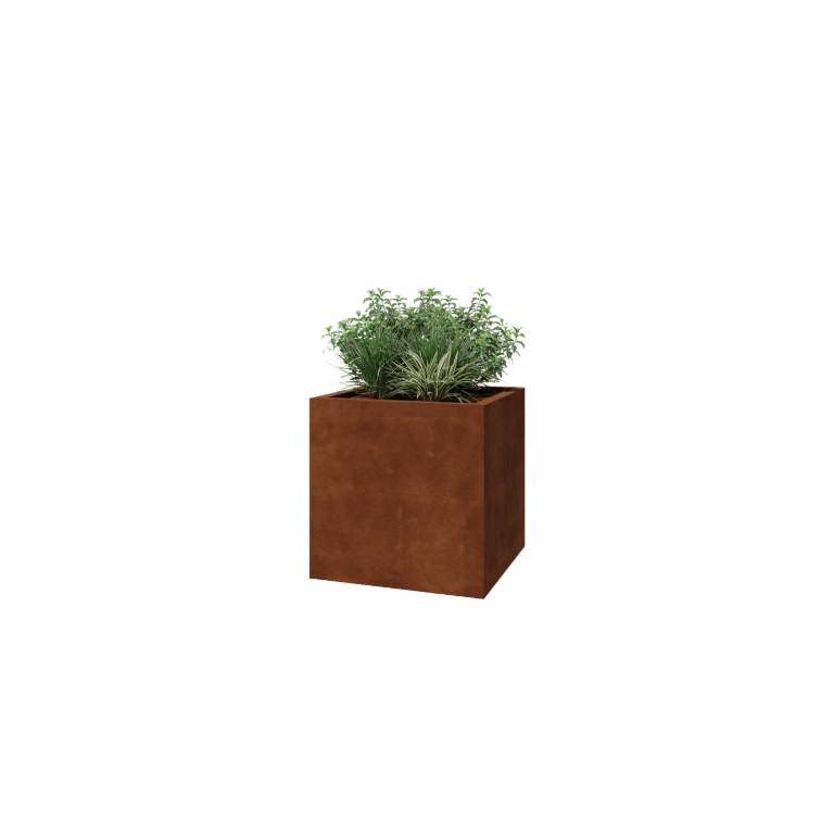 Nämä kasvilaatikot valmistetaan korkealaatuisesta Corten-teräksestä. Tämä metalliseos muodostaa ainutlaatuisen tiheän oksidikerroksen (ruostekerros) joka estää läpiruostumisen. Tiheä oksidikerros suojaa syvemmällä olevaa materiaalia hapelta, mikä hidastaa oksidaatiota merkittävästi vaikka korroosio jatkuu. Corten-teräksinen kasvilaatikko toimitetaan ruostumattomana, harmaassa metallivärissä. Ruostumisprosessi alkaa ensimmäisten kahden kuukauden aikana, eikä siihen tarvita erityistä käsittelyä. Ruostumisprosessin aikana kasvilaatikko voi päästää väriä. Corten-teräs on metalliseos, joka koostuu raudasta, johon on lisätty kuparia, fosforia, piitä, nikkeliä ja kromia.