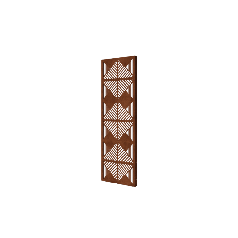 Tämä paneeli on valmistettu korkealaatuisesta Corten-A teräksestä, metalliseoksesta, joka koostuu raudasta, kuparista, fosforista, piistä, nikkelistä ja kromista. Corten-teräksen ainutlaatuinen ominaisuus on tiheän oksidikerroksen muodostuminen, joka toimii suojaavana ruostekerroksena. Tämä kerros estää läpi ruostumisen ja suojaa sisäistä materiaalia edelleen oksidoitumiselta, samalla kun korroosioprosessi etenee hitaasti.