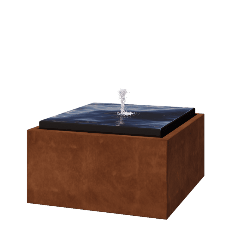 Vesielementti toimitetaan täydellisenä mukana tulevalla pumpulla ja johdolla. Altaan sisällä oleva pumppu nostaa vettä ylöspäin. Vesi virtaa sitten sisälevyn yli ja palaa takaisin altaaseen. Corten-teräksisen vesielementin kanssa sinun on vaihdettava vesi ensimmäisten kuukausien aikana, kunnes ruostuminen on valmis. Pakkanen vaatii pumpun sammuttamista. Lisäoptiona voit valita LED-valaistuksen.