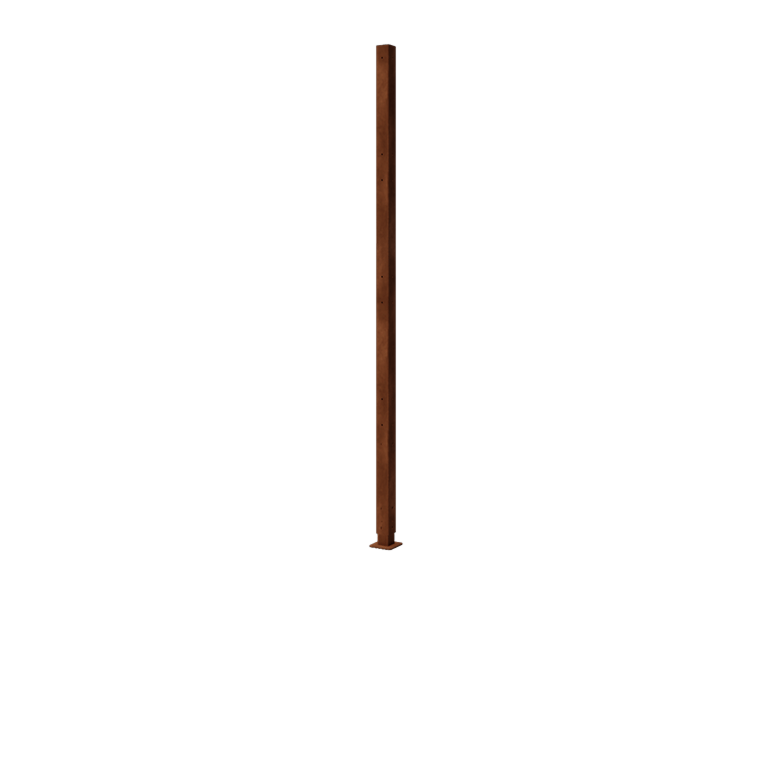 Asennustuki ja jalusta on valmistettu korkealaatuisesta Corten-A teräksestä, joka on metalliseos, joka koostuu raudasta, kuparista, fosforista, piistä, nikkelistä ja kromista. Corten-teräksen ainutlaatuinen ominaisuus on tiheän oksidikerroksen muodostuminen, joka toimii suojaavana ruostekerroksena. Tämä kerros estää läpi ruostumisen ja suojaa sisäistä materiaalia edelleen oksidoitumiselta, samalla kun korroosioprosessi etenee hitaasti.