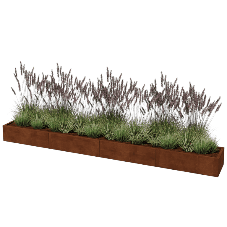 Tämä kasvilava on modulaarinen teräksinen kasvilava, joka toimitetaan rakennussarjana. Kasvilava koostuu irtonaisista paneeleista ja kulmaosista. Lavojen liittäminen on täysin huomaamatonta. Kiinnityksiä ei ole näkyvissä. Modulaarisen järjestelmämme ansiosta myös erittäin suuria mittoja on mahdollista toteuttaa. Kulmaosien avulla voidaan luoda ainutlaatuisia muotoja, joita ei ole saatavilla missään muualla. Lisätietoja löytyy käyttöohjeesta.