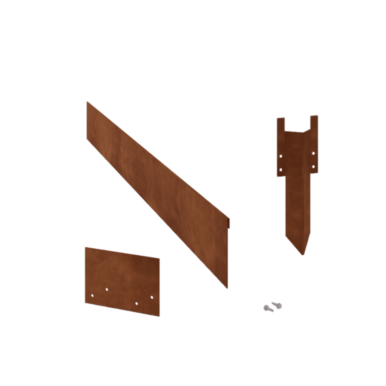 Materiaali Nämä reunukset valmistetaan korkealaatuisesta Corten-A teräksestä. Tällä metallityypillä on ainutlaatuinen ominaisuus, että se muodostaa erittäin tiheän oksidikerroksen (ruosteen). Täten läpi ruostuminen on mahdotonta. Tiheä oksidikerros suojaa syvemmällä olevaa materiaalia hapelta, mikä hidastaa oksidaatiota merkittävästi, vaikka korroosio jatkuu. Reunus toimitetaan ruostumattomana, harmaassa metallivärissä. Ruostumisprosessi alkaa ensimmäisten kahden kuukauden aikana, eikä siihen tarvita erityistä käsittelyä. Ruostumisprosessin aikana reunus saattaa päästää väriä. Corten-teräs on metalliseos, joka koostuu raudasta, johon on lisätty kuparia, fosforia, piitä, nikkeliä ja kromia.