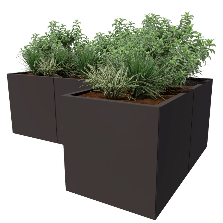 Tämä kasvilava on modulaarinen teräksinen kasvilava, joka toimitetaan rakennussarjana. Kasvilava koostuu irtonaisista paneeleista ja kulmaosista. Lavojen liittäminen on täysin huomaamatonta. Kiinnityksiä ei ole näkyvissä. Modulaarisen järjestelmämme ansiosta myös erittäin suuret mitat ovat mahdollisia. Kulmaosien avulla voidaan luoda ainutlaatuisia muotoja, joita ei ole saatavilla missään muualla. Katso käyttöohje lisätietoja varten.